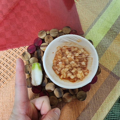 같이 밭에 갔다가 아로하가 미니 무를 뽑아서 만든 깍두기입니다.