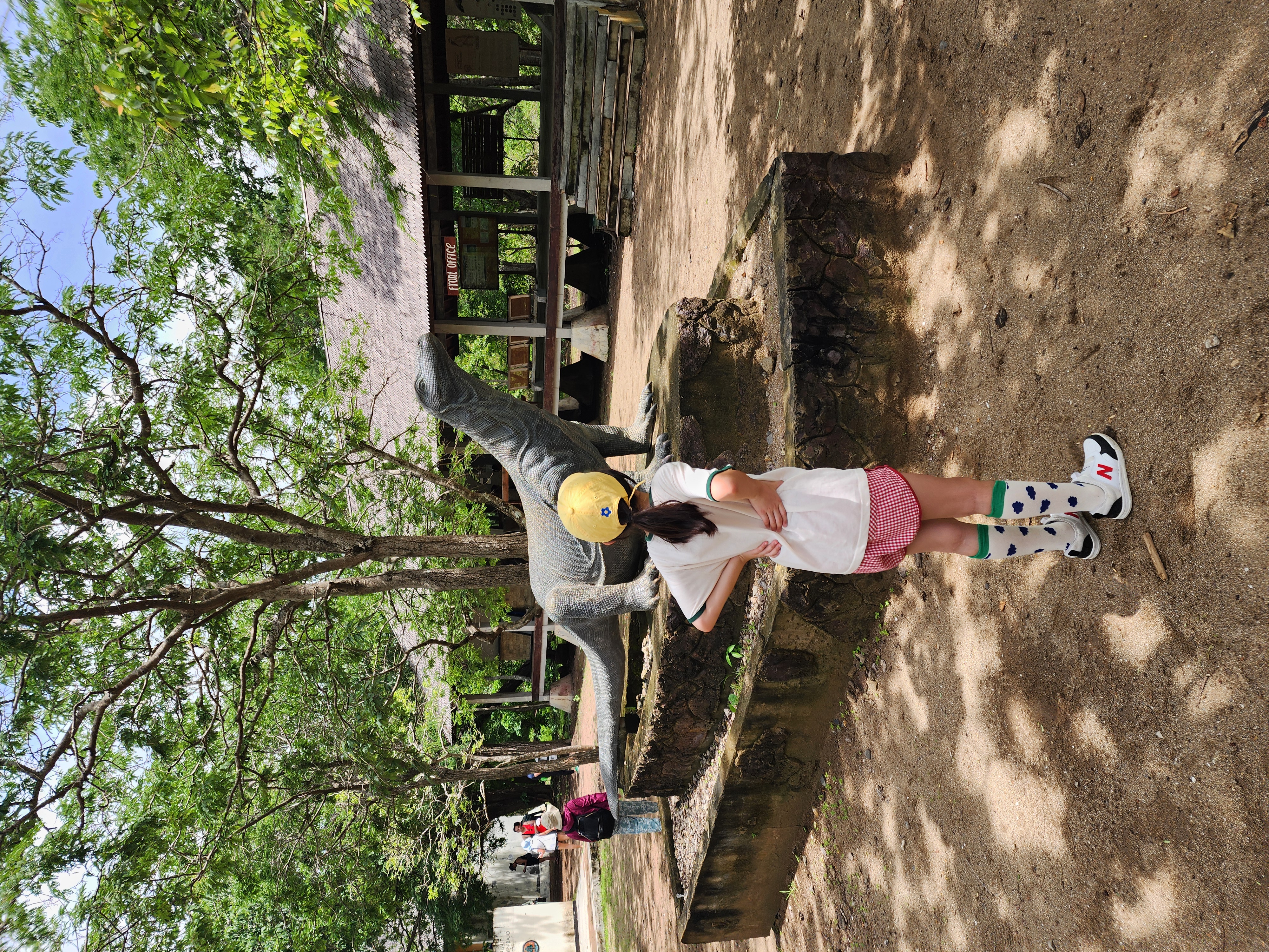 코모도 내셔널 파크 화장실은 이 코모도드래건 동상 뒤편으로 가시면 있어요.