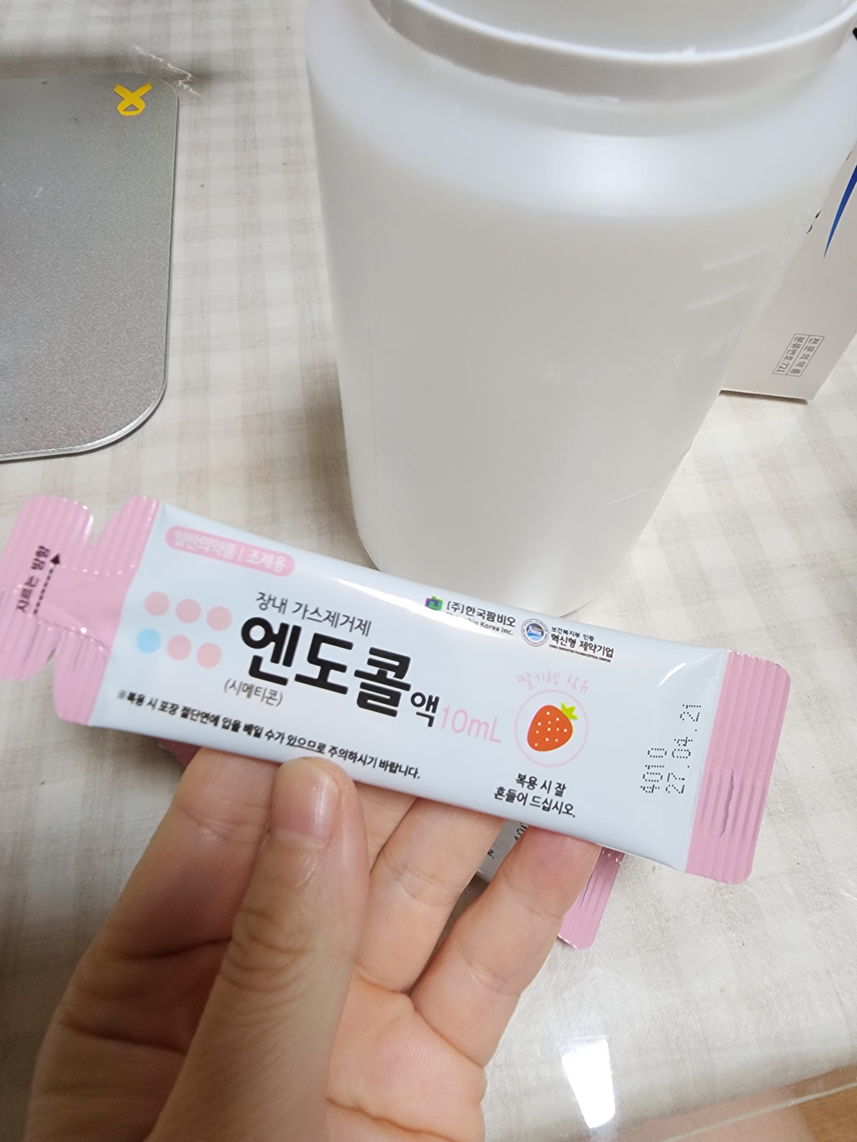 1) 엔도콜(가스 제거제) 2) 수클리어산 3) 물 2리터